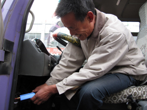 司機展示衛(wèi)通達(dá)GPS定位系統(tǒng)