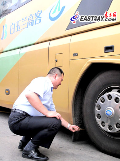 滿在并告訴東方網記者,為了保障乘客的生命安全,每次出車前司機都會對整車的車況進行檢驗,包括調校輪胎、門泵、實時GPS定位系統(tǒng)、發(fā)動機、車燈等是否正常運作?!霸谒緳C檢查之后,還會由專門的車況安檢員進行復檢,雙重檢查確保了車輛的行車安全,也讓乘客的生命安全有保障。”