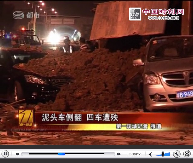 泥頭車超速側(cè)翻 四車遭殃 城市版生死時(shí)速