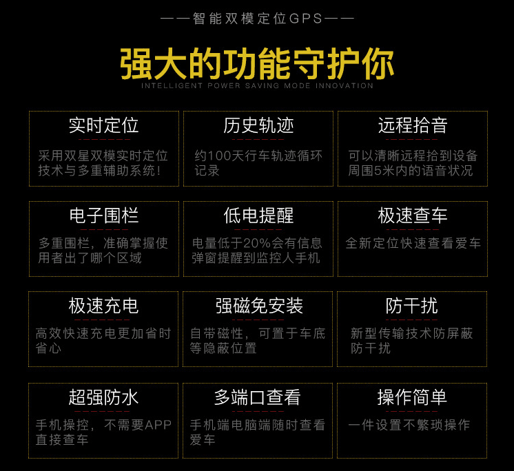 衛(wèi)星定位、基站定位、遠(yuǎn)程復(fù)位、智能修復(fù)、省電模式、追蹤模式、偽基站檢測