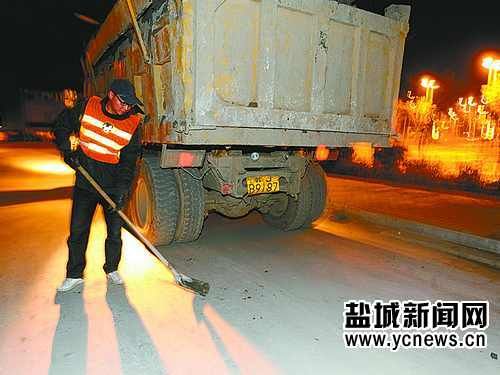 渣土車經(jīng)過(guò)的路面常常落滿灰土。
