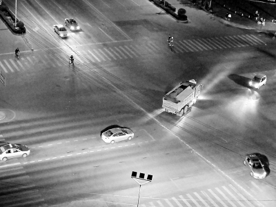 5月30日23時(shí),鄭州市大學(xué)路航海路口,一輛水泥罐車和兩輛渣土清運(yùn)車按照信號(hào)燈依次通過路口。車輛起步時(shí),司機(jī)猛地加大油門,在百米之外的居民樓內(nèi),記者可以清晰地聽到馬達(dá)的轟鳴聲。