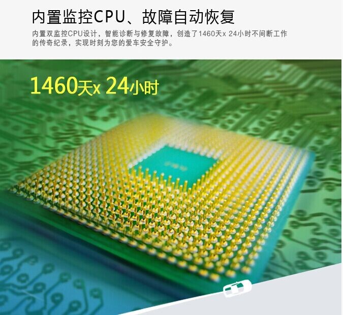 7、內(nèi)置的CPU芯片自我診斷和修復(fù)故障功能,使車輛24小時(shí)全天候?qū)崟r(shí)監(jiān)控,守護(hù)你的車輛安全。