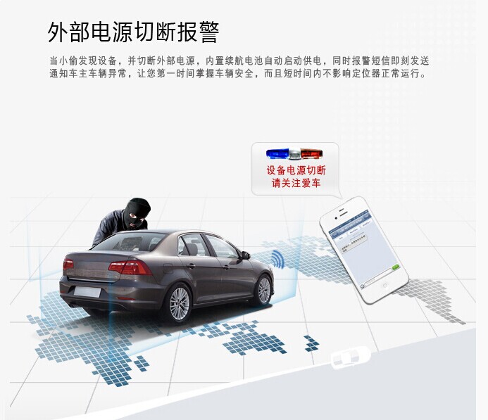 11、當(dāng)司機(jī)或者是小偷發(fā)現(xiàn)設(shè)備不想讓對(duì)其監(jiān)控時(shí),切掉電源以后主機(jī)利用后備電池馬上發(fā)出報(bào)警信息。