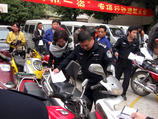 柳州市公安局魚(yú)峰分局在深入開(kāi)展“大走訪”愛(ài)民實(shí)踐活動(dòng)中,針對(duì)群眾反映強(qiáng)烈的機(jī)動(dòng)車、電動(dòng)車被盜嚴(yán)重的情況,決定自今年1月1日起開(kāi)展為期3個(gè)月的打擊盜竊機(jī)動(dòng)車、電動(dòng)車行動(dòng),取得輝煌戰(zhàn)果。行動(dòng)開(kāi)展僅20天,破獲各各類案件121起,抓獲犯罪嫌疑人87人,追回被盜物品價(jià)值120余萬(wàn)元。1月20日,該分局在雞喇責(zé)任區(qū)刑偵大隊(duì)舉行退贓大會(huì),將追回的被盜車輛小汽車10輛、摩托車9輛、電動(dòng)車46輛退還被盜事主,警方的快速破案、快速退贓受到了群眾的高度贊譽(yù)。(韋崇結(jié) 龍飛良) 整理:洪麓豐