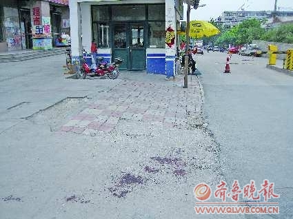 22日上午天福苑小區(qū)門口仍可見斑斑血跡 本報記者 王若松 攝
