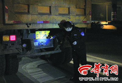昨晚9時(shí)許,西安市公安局交警支隊(duì)特勤大隊(duì)民警在南三環(huán)與子午大道十字檢查渣土車時(shí),攔下車號為陜AF7205的渣土車,該車后牌污損,放大號看不清,車頭頂燈不亮。駕駛員當(dāng)場提供不了駕駛員備案證和車輛備案證,也未見到行駛證。