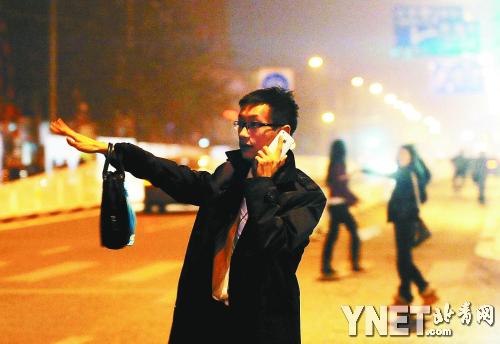 一見出租眾人伸手的景象在北京隨處可見攝影/本報記者 郝羿
